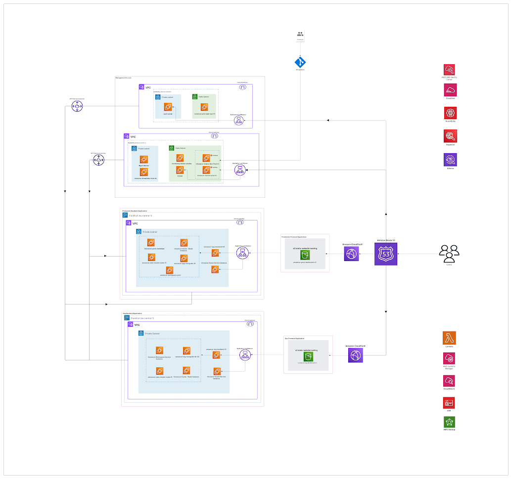 As outlined in the deployed architecture , the platform is structured across a Master account (control plane) and isolated Development and Production accounts (data plane). Control-plane services—such as Route 53, Jenkins, and Vault—are intentionally restricted from direct access to customer data.